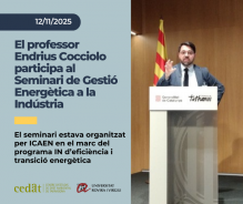 El passat 12 de novembre, Endrius Cocciolo, professor de Dret Administratiu de la Universitat Rovira i Virgili i investigador del CEDAT, va participar com a ponent al Seminari de Gestió Energètica a la Indústria organitzat per l'ICAEN, en el marc del programa de formació IN sobre eficiència i transició energètica en l'àmbit industrial. La sessió, dedicada a la flexibilitat de la demanda i les comunitats energètiques industrials, va permetre analitzar en profunditat el potencial transformador d'aquestes figures dins del nou model energètic. Durant la seva intervenció, Endrius Cocciolo va abordar: