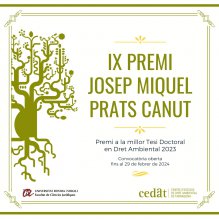 Oberta la convocatòria del Premi Josep Miquel Prats Canut a la millor Tesi Doctoral en Dret Ambiental (IX edició)
