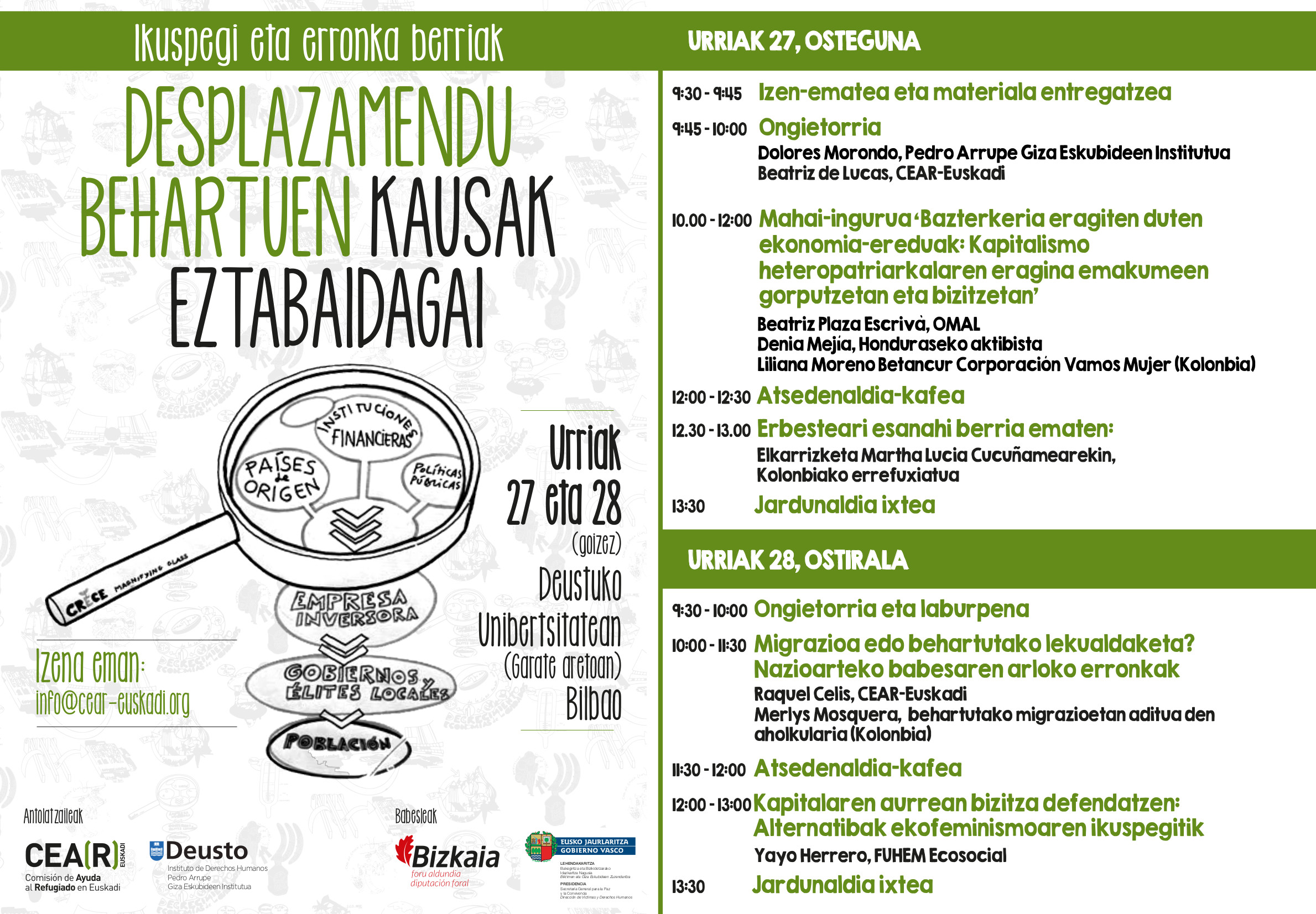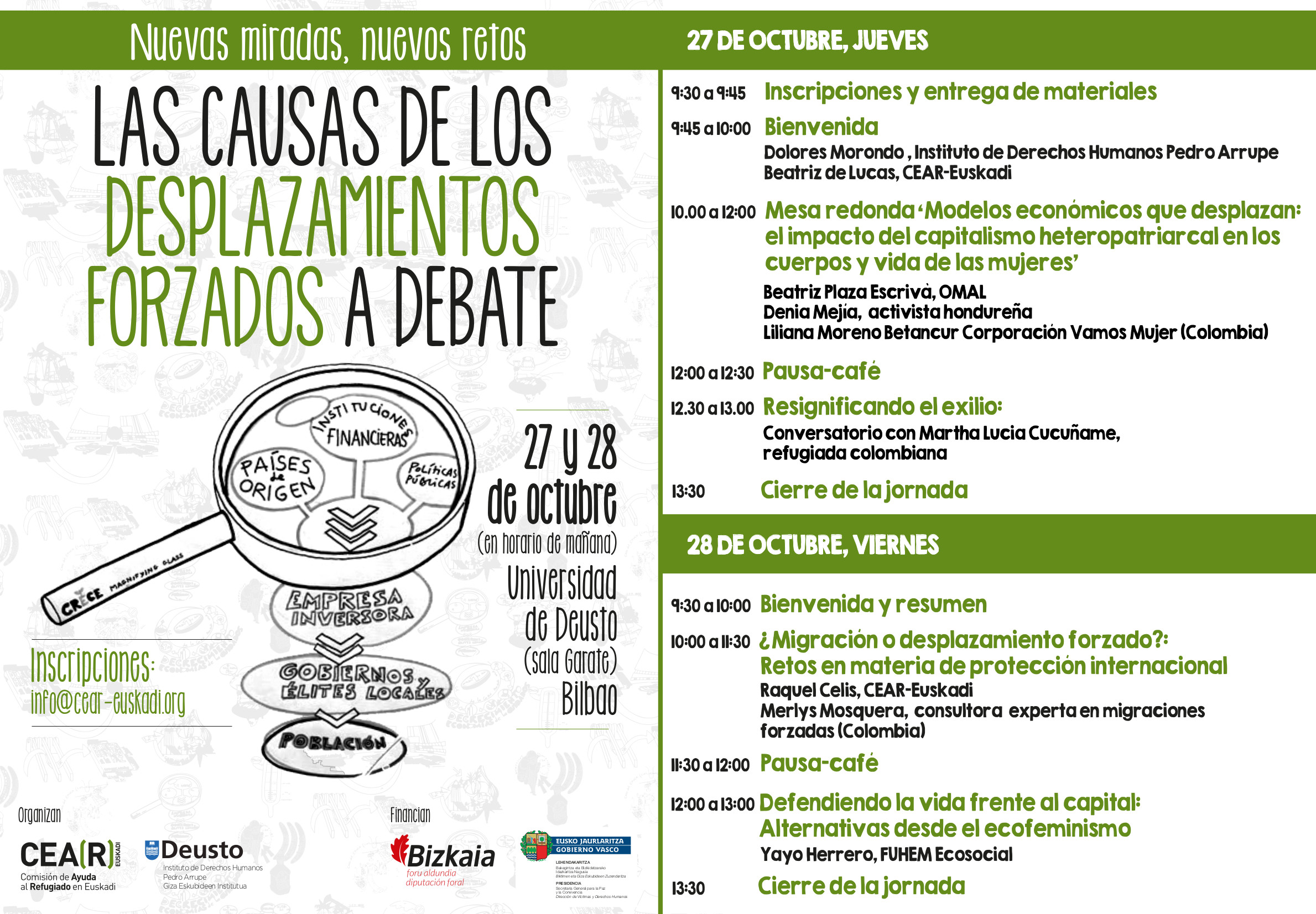 ¿QUIENES? Denia Mejía (activista hondureña), Liliana Moreno (Corporación Vamos Mujer - Colombia), Merlys Mosquera (experta en migraciones forzadas - Colombia), Yayo Herrero (FUHEM Ecosocial), Beatriz Plaza Escrivà (OMAL), Beatriz de Lucas y Raquel Celis (CEAR-Euskadi).