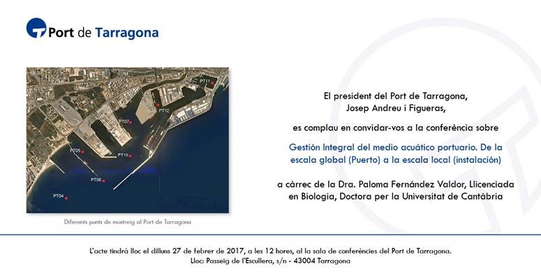 Invitació a la conferència: "Gestió Integral del medi aquàtic portuari. De l'escala global (port) a l'escala local (instal·lació)"