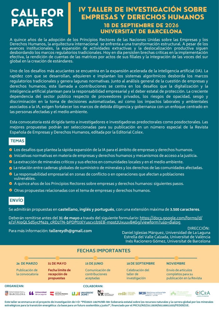 IV Taller de investigación sobre Empresas y Derechos Humanos