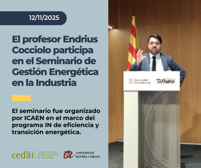 Endrius Cocciolo aporta la mirada jurídica de la URV al Seminari de Gestió Energètica d’ICAEN