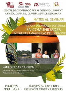El Centro de Cooperación para el Desarrollo URV Solidaria y el departamento de Geografía os invitan al seminario "Paisaje y desarrollo sostenible en comunitats indígenas amazónicas del Ecuador"