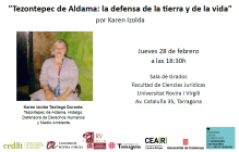 Karen Izolda Taxilaga Durante, es defensora de derechos humanos, pueblos indígenas y dirigente campesina en México. Forma parte de la comunidad indígena de Tezontepec de Aldama, situada en Hidalgo, en la zona norte de la capital del país. Una comunidad que ha sido despojada de su territorio comunal, que ocupa 1899 hectáreas, y dónde se encuentra el manto freático más grande de la zona centro de México, en el Valle del Mezquital.