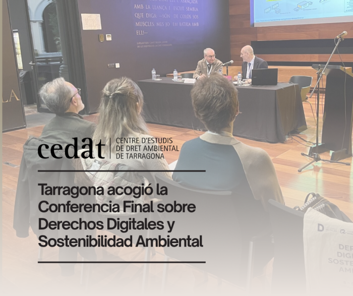 Conferencia Final sobre Derechos Digitales y Sostenibilidad Ambiental, un encuentro académico impulsado en el marco del proyecto estatal coordinado por la entidad pública Red.es con el objetivo de avanzar en la implementación de la Carta de Derechos Digitales, especialmente en relación con los retos de la sostenibilidad en la era digital. En este proyecto, el profesor Jordi Jaria‑Manzano, investigador del Centro de Estudios de Derecho Ambiental de Tarragona (CEDAT), actúa como investigador principal del equipo de la Universitat Rovira i Virgili.