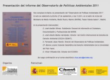 Martes 27 de septiembre. Presentación del informe del Observatorio de de Políticas Ambientales 2011, en el que han participado miembros del CEDAT